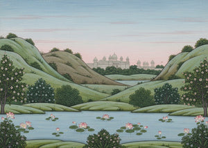 Mughal Miniature: Royal Couple in a Love Scene Landscape